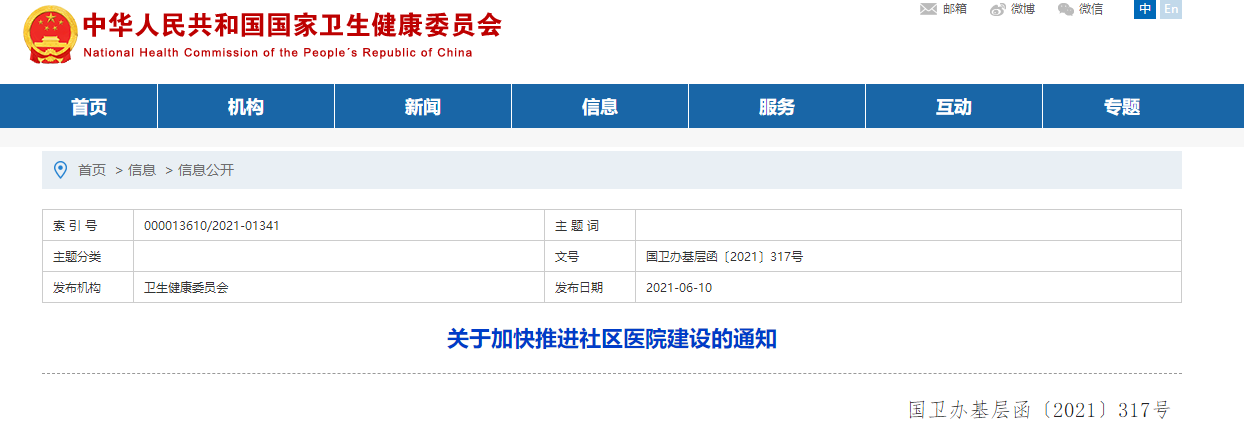 國家衛(wèi)健委關(guān)于加快推進社區(qū)醫(yī)院建設(shè)的通知