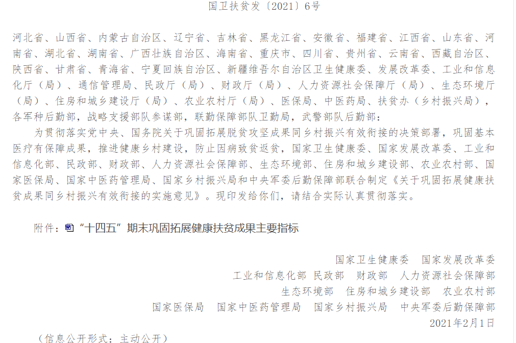 國家衛(wèi)健委關(guān)于鞏固拓展健康扶貧成果同鄉(xiāng)村振興有效銜接的實施意見