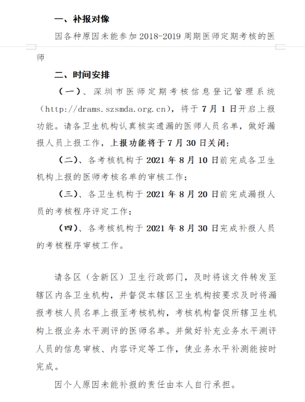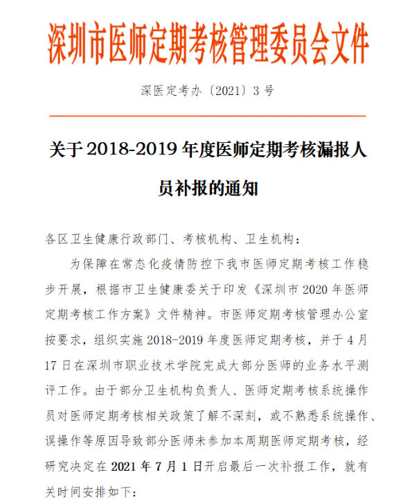 深圳市關(guān)于2018-2019年度醫(yī)師定期考核漏報人員補報的通知
