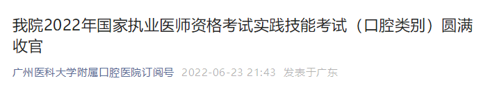 廣州醫(yī)科大學(xué)附屬口腔醫(yī)院2022年國家執(zhí)業(yè)醫(yī)師資格考試實踐技能考試(口腔類別)圓滿收官!有關(guān)信息醫(yī)學(xué)教育網(wǎng)編輯整理分享如下: