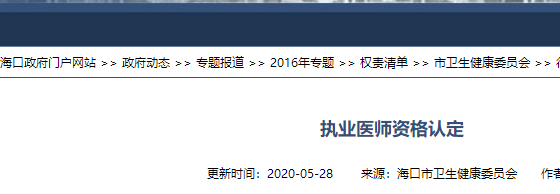 海口市關(guān)于執(zhí)業(yè)醫(yī)師資格認(rèn)定的說明