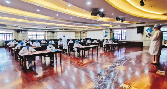 考試基地準備工作根據(jù)國家中醫(yī)類別醫(yī)師資格實踐技能的相關要求進行,在宓軼群副院長的統(tǒng)一安排下,醫(yī)院成立了專項考務辦公室與考試工作組。根據(jù)今年新增的防疫要求重新設計考試流程,在考生簽到處設置流調(diào)點,配備專業(yè)人員對考試相關場所進行消殺,今年考試的題型分布也較往年有所改變,考試用房因此增加到12間,任用考官32名,體檢志愿者12名及各級各類考務人員近40名。