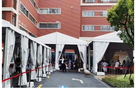 7月11日8點整,考生有序進入各考站開始考試。九院黨委書記、交大口腔醫(yī)學院院長郭蓮來到考試現(xiàn)場,對各考站進行檢查與指導。7月12日上午上海市衛(wèi)生人才交流服務中心吳曉東主任、上海市衛(wèi)生健康委醫(yī)政醫(yī)管處黃銳主任、上海市衛(wèi)生人才交流服務中心人才評價部馮燕部長等來到考試基地進行考場巡視,并對九院基地的各項工作給予了高度評價,尤其是結(jié)合防疫和戰(zhàn)高溫的實際情況,基地提前布局與設(shè)計。如現(xiàn)場搭置大棚作為考生的候考及休息區(qū),場內(nèi)設(shè)有雙排冰桶降溫、喇叭循環(huán)播放提醒考生注意事項、地面有一米線間隔的標示等細節(jié)受到了巡視組的好評。為做好疫情防控、高溫防暑的工作在軟硬件方面做了充分的準備,真正落實《醫(yī)師資格考試疫情防控要求》等文件要求。