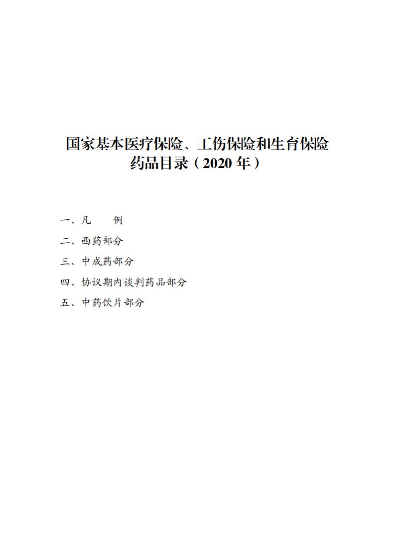 國家基本醫(yī)療保險(xiǎn)、工傷保險(xiǎn)和生育保險(xiǎn)藥品目錄2020目錄_01