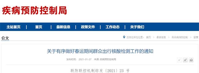 1月28日春運開始后持核酸檢測陰性證明返鄉(xiāng)!還要14天居家觀察!