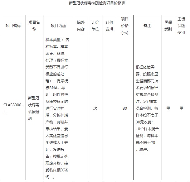 附件:新型冠狀病毒核酸檢測項(xiàng)目價(jià)格表