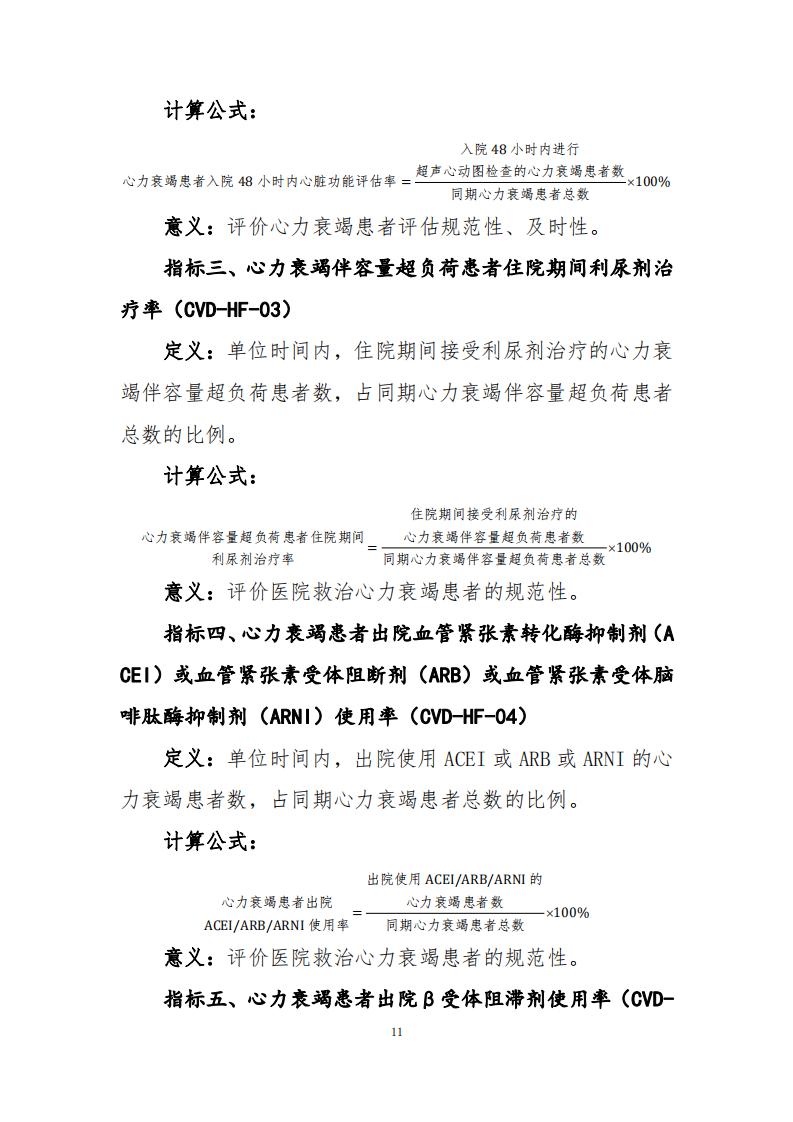 心力衰竭(11項(xiàng)指標(biāo)) 計(jì)算公式(2021年版本),大家都在關(guān)注,為進(jìn)一步加強(qiáng)醫(yī)療質(zhì)量管理,規(guī)范臨床診療行為,促進(jìn)醫(yī)療服務(wù)的標(biāo)準(zhǔn)化、同質(zhì)化,我委組織制定了心血管系統(tǒng)疾病相關(guān)專業(yè)醫(yī)療質(zhì)量控制指標(biāo)?,F(xiàn)印發(fā)給你們,供各級(jí)衛(wèi)生健康行政部門(mén)、相關(guān)專業(yè)質(zhì)控中心和醫(yī)療機(jī)構(gòu)在醫(yī)療質(zhì)量管理與控制工作中使用。各級(jí)各類醫(yī)療機(jī)構(gòu)要充分利用相關(guān)質(zhì)控指標(biāo)開(kāi)展質(zhì)量管理工作,不斷提升醫(yī)療質(zhì)量管理的科學(xué)化和精細(xì)化水平。各省級(jí)衛(wèi)生健康行政部門(mén)和相關(guān)專業(yè)質(zhì)控中心要加強(qiáng)對(duì)轄區(qū)內(nèi)醫(yī)療機(jī)構(gòu)的培訓(xùn)和指導(dǎo),采用信息化手段加強(qiáng)指標(biāo)信息收集、分析和反饋,指導(dǎo)醫(yī)療機(jī)構(gòu)持續(xù)改進(jìn)醫(yī)療質(zhì)量。