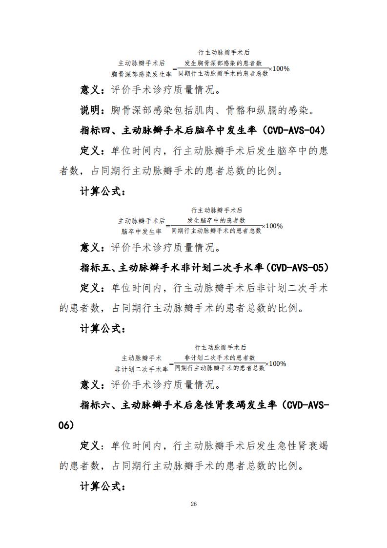 主動(dòng)脈瓣手術(shù)(9項(xiàng)指標(biāo))計(jì)算公式2021年版本,大家都在關(guān)注,為進(jìn)一步加強(qiáng)醫(yī)療質(zhì)量管理,規(guī)范臨床診療行為,促進(jìn)醫(yī)療服務(wù)的標(biāo)準(zhǔn)化、同質(zhì)化,我委組織制定了心血管系統(tǒng)疾病相關(guān)專業(yè)醫(yī)療質(zhì)量控制指標(biāo)?,F(xiàn)印發(fā)給你們,供各級(jí)衛(wèi)生健康行政部門、相關(guān)專業(yè)質(zhì)控中心和醫(yī)療機(jī)構(gòu)在醫(yī)療質(zhì)量管理與控制工作中使用。各級(jí)各類醫(yī)療機(jī)構(gòu)要充分利用相關(guān)質(zhì)控指標(biāo)開展質(zhì)量管理工作,不斷提升醫(yī)療質(zhì)量管理的科學(xué)化和精細(xì)化水平。各省級(jí)衛(wèi)生健康行政部門和相關(guān)專業(yè)質(zhì)控中心要加強(qiáng)對(duì)轄區(qū)內(nèi)醫(yī)療機(jī)構(gòu)的培訓(xùn)和指導(dǎo),采用信息化手段加強(qiáng)指標(biāo)信息收集、分析和反饋,指導(dǎo)醫(yī)療機(jī)構(gòu)持續(xù)改進(jìn)醫(yī)療質(zhì)量。