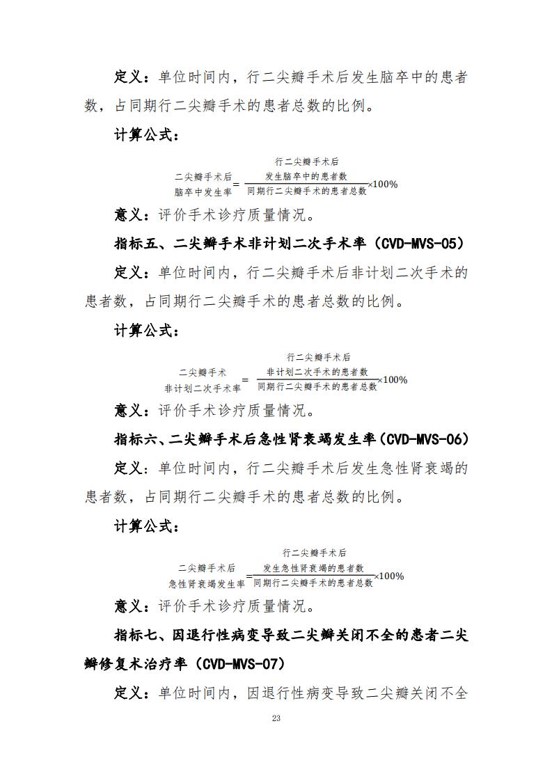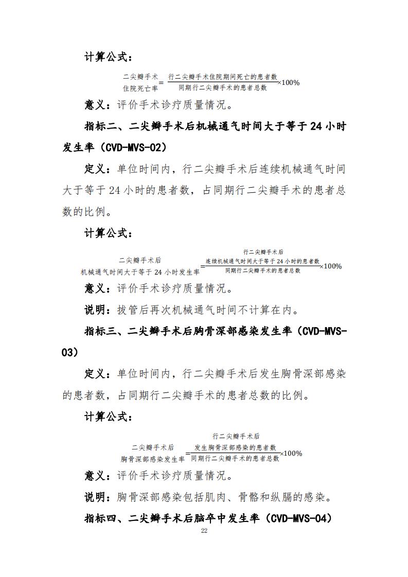 二尖瓣手術(9項指標)計算公式(2021年版),大家都在關注,為進一步加強醫(yī)療質(zhì)量管理,規(guī)范臨床診療行為,促進醫(yī)療服務的標準化、同質(zhì)化,我委組織制定了心血管系統(tǒng)疾病相關專業(yè)醫(yī)療質(zhì)量控制指標?,F(xiàn)印發(fā)給你們,供各級衛(wèi)生健康行政部門、相關專業(yè)質(zhì)控中心和醫(yī)療機構在醫(yī)療質(zhì)量管理與控制工作中使用。各級各類醫(yī)療機構要充分利用相關質(zhì)控指標開展質(zhì)量管理工作,不斷提升醫(yī)療質(zhì)量管理的科學化和精細化水平。各省級衛(wèi)生健康行政部門和相關專業(yè)質(zhì)控中心要加強對轄區(qū)內(nèi)醫(yī)療機構的培訓和指導,采用信息化手段加強指標信息收集、分析和反饋,指導醫(yī)療機構持續(xù)改進醫(yī)療質(zhì)量。