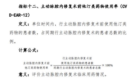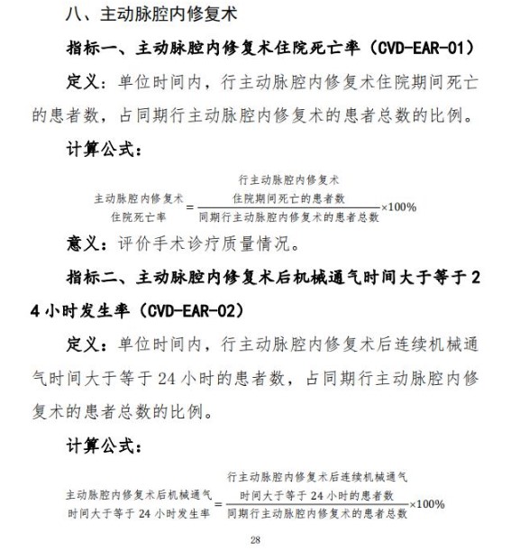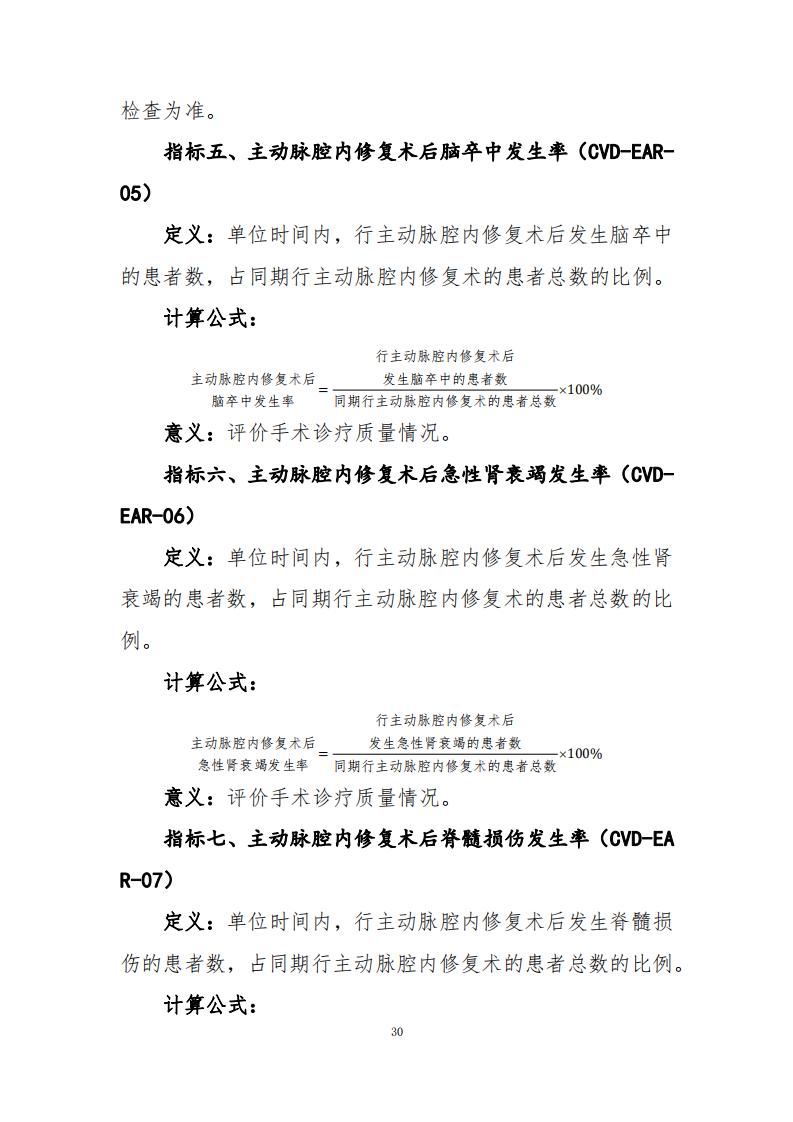 主動脈腔內(nèi)修復(fù)術(shù)(12項指標)計算公式2021版本,大家都在關(guān)注,為進一步加強醫(yī)療質(zhì)量管理,規(guī)范臨床診療行為,促進醫(yī)療服務(wù)的標準化、同質(zhì)化,我委組織制定了心血管系統(tǒng)疾病相關(guān)專業(yè)醫(yī)療質(zhì)量控制指標。現(xiàn)印發(fā)給你們,供各級衛(wèi)生健康行政部門、相關(guān)專業(yè)質(zhì)控中心和醫(yī)療機構(gòu)在醫(yī)療質(zhì)量管理與控制工作中使用。各級各類醫(yī)療機構(gòu)要充分利用相關(guān)質(zhì)控指標開展質(zhì)量管理工作,不斷提升醫(yī)療質(zhì)量管理的科學(xué)化和精細化水平。各省級衛(wèi)生健康行政部門和相關(guān)專業(yè)質(zhì)控中心要加強對轄區(qū)內(nèi)醫(yī)療機構(gòu)的培訓(xùn)和指導(dǎo),采用信息化手段加強指標信息收集、分析和反饋,指導(dǎo)醫(yī)療機構(gòu)持續(xù)改進醫(yī)療質(zhì)量。