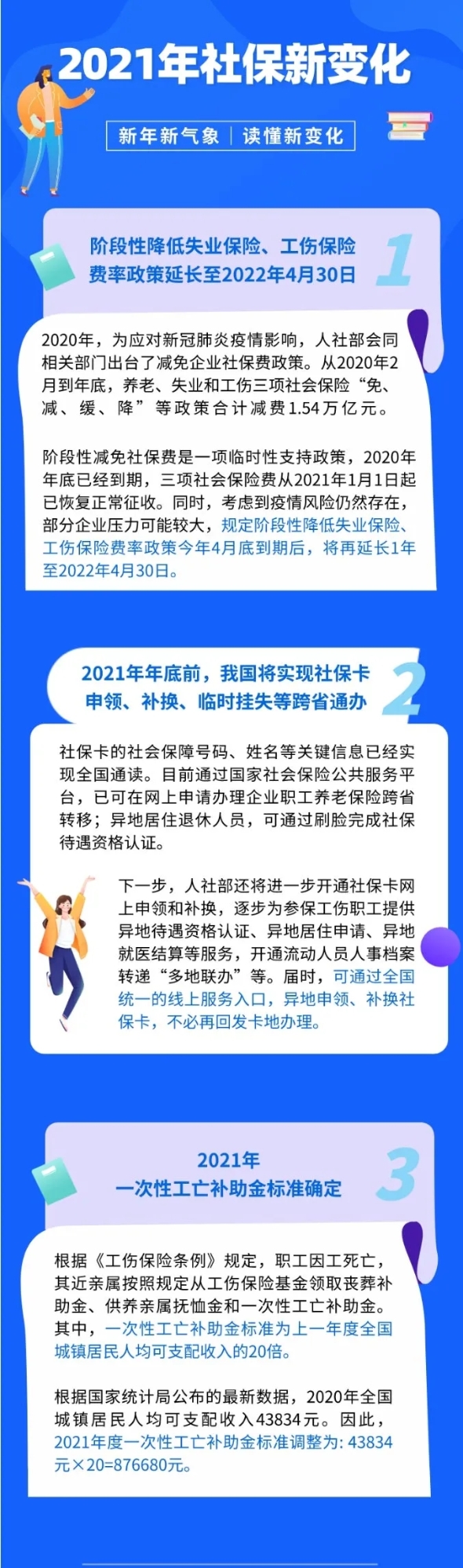 新年新氣象。你的社保今年也有新調整,主要涉及醫(yī)療、失業(yè)、工傷等多方面。在階段性降低失業(yè)保險、工傷保險費率方面,減免支持政策將延長至2022年4月30日。