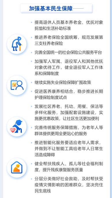 關(guān)于加強(qiáng)基本民生保障,2021年《政府工作報(bào)告》提出以下目標(biāo):
