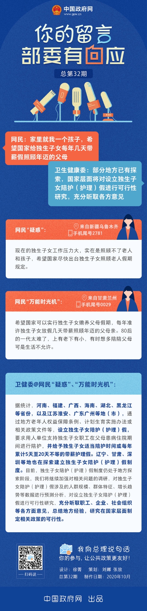 衛(wèi)生健康委答網(wǎng)民關(guān)于“希望設(shè)立獨(dú)生子女陪護(hù)假”的留言