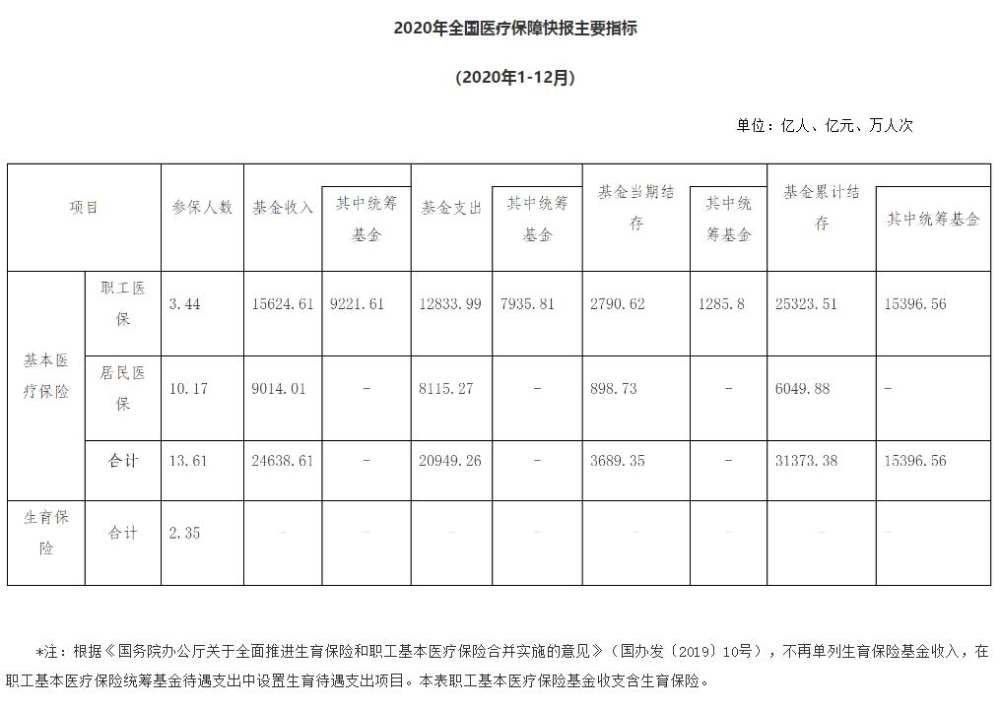 全年基本醫(yī)療保險基金(含生育保險)總收入、總支出分別為24638.61億元、20949.26億元,年末基本醫(yī)療保險(含生育保險)累計結存31373.38億元。