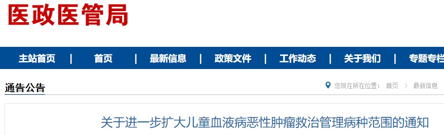 - · 國家關于進一步擴大兒童血液病惡性腫瘤救治管理病種范圍的通知