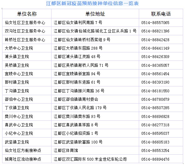 (1)有單位人員由單位牽頭,集體登記后向所在地接種門診預(yù)約,各接種門診電話附后;