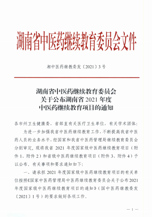 湖南省中醫(yī)藥繼續(xù)教育委員會(huì)關(guān)于公布湖南省2021年度中醫(yī)藥繼續(xù)教育項(xiàng)目的通知