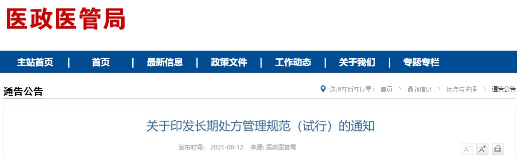 關(guān)于印發(fā)長期處方管理規(guī)范(試行)的通知