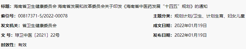 - · 關(guān)于印發(fā)《海南省中醫(yī)藥發(fā)展“十四五”規(guī)劃》的通知