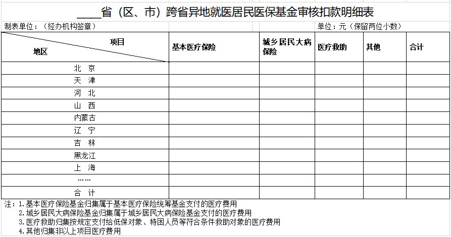 ?。▍^(qū)、市)跨省異地就醫(yī)居民醫(yī)保基金審核扣款明細表
