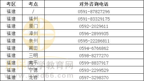 福建考區(qū)醫(yī)師資格考試各考點(diǎn)和9個(gè)考點(diǎn)對(duì)外咨詢(xún)電話(huà)匯總