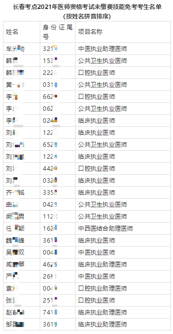 繳費 | 長春考點醫(yī)學(xué)綜合考試未繳費考生名單公示