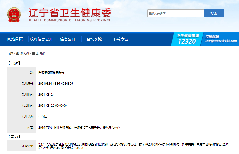 遼寧衛(wèi)健委|醫(yī)師資格審核表丟失怎么辦?