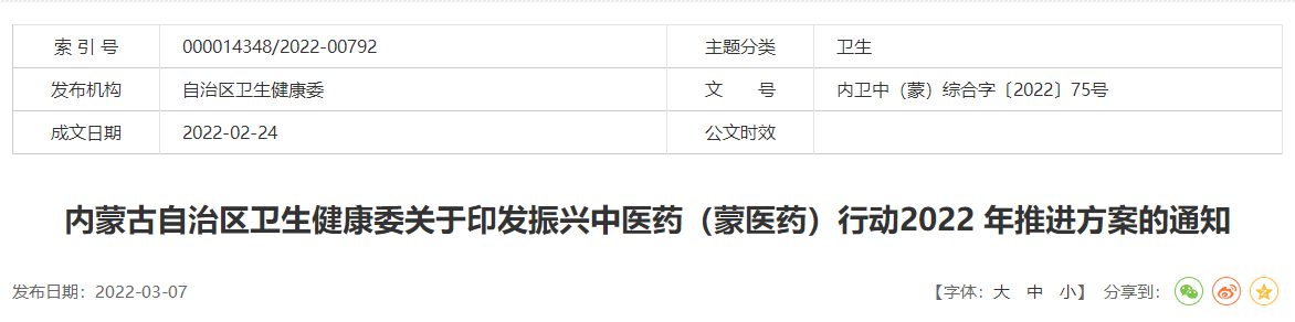 內(nèi)蒙古自治區(qū)衛(wèi)生健康委關(guān)于印發(fā)振興中醫(yī)藥(蒙醫(yī)藥)行動(dòng)2022年推進(jìn)方案的通知