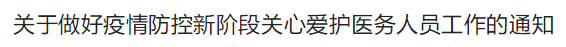 關(guān)于做好疫情防控新階段關(guān)心愛(ài)護(hù)醫(yī)務(wù)人員工作的通知