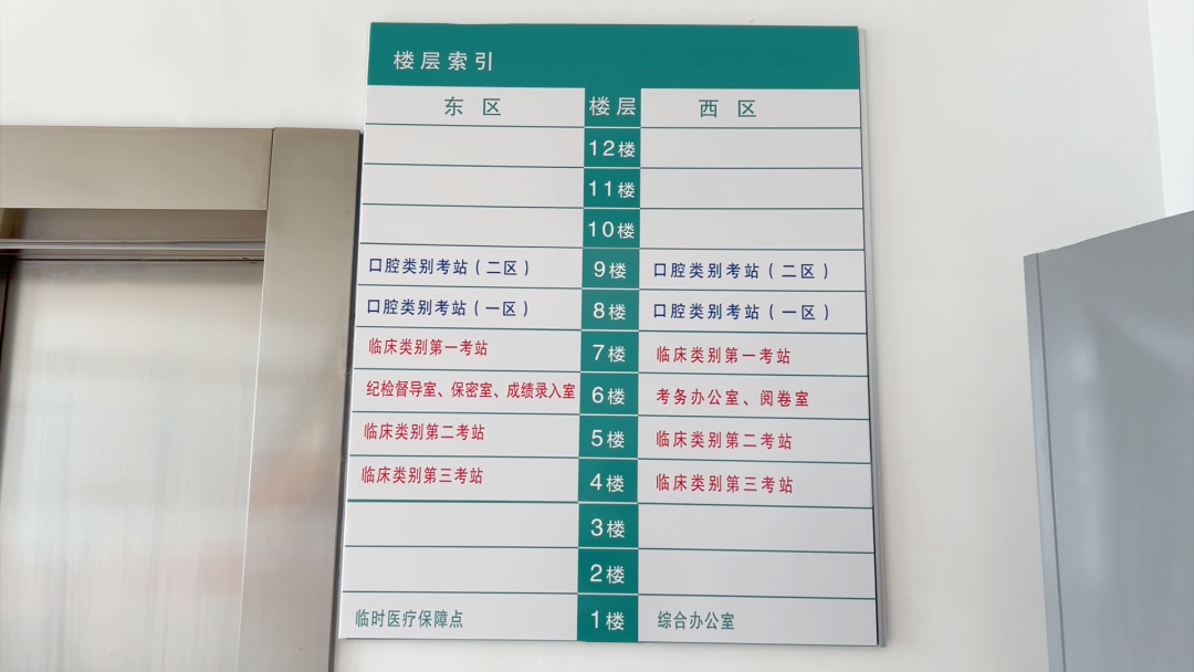 “我們基地剛在5月底通過了國家驗(yàn)收,就緊鑼密鼓地為考試做準(zhǔn)備,盡最大努力服務(wù)好此次考試?!?月6日,市中心醫(yī)院科教科科長黃贊向記者介紹,此次考試有來自全省2800多名臨床類別考生和1600多名口腔類別考生參考。為保障考試有序進(jìn)行,該基地設(shè)置了兩條考生專用單向通道,以紅色、藍(lán)色分別代表臨床類別和口腔類別,兩類別考區(qū)分設(shè)在不同樓層,考生以隨機(jī)抽號的方式進(jìn)入考場。由于考試時間較長,各候考室內(nèi)還貼心準(zhǔn)備了飲用水、零食及衛(wèi)生用品等,供考生食用、使用。