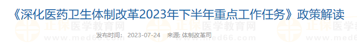 - · 《深化醫(yī)藥衛(wèi)生體制改革2023年下半年重點(diǎn)工作任務(wù)》政策解讀