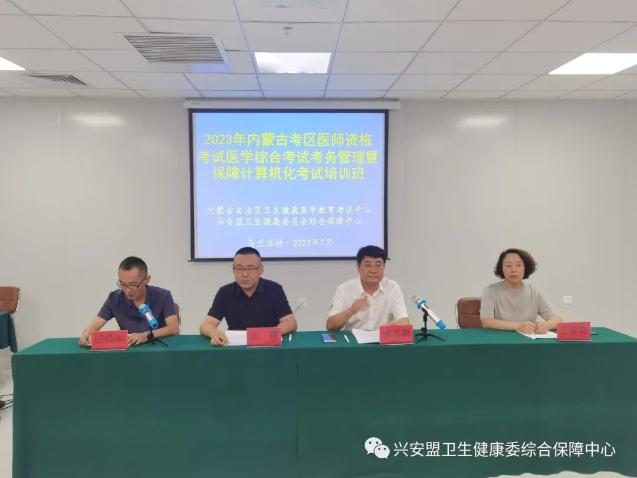 為做好2023年醫(yī)師資格考試醫(yī)學(xué)綜合考試計(jì)算機(jī)化考試工作,更好地落實(shí)機(jī)考工作安排,7月31日至8月1日,由自治區(qū)衛(wèi)生健康醫(yī)學(xué)教育考試中心主辦,興安盟衛(wèi)健委綜合保障中心承辦的《2023年內(nèi)蒙古考區(qū)醫(yī)師資格考試醫(yī)學(xué)綜合考試考務(wù)管理暨保障計(jì)算機(jī)化考試培訓(xùn)班》在興安盟召開。自治區(qū)衛(wèi)生健康醫(yī)學(xué)教育考試中心副主任邊疆,盟衛(wèi)健委副主任徐志新出席開班儀式。全區(qū)12個(gè)考點(diǎn)的考務(wù)人員和機(jī)考保障人員參加培訓(xùn)。