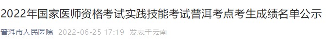 2022年國(guó)家醫(yī)師資格考試實(shí)踐技能考試普洱考點(diǎn)考生成績(jī)名單公示