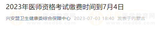 最后一天!內(nèi)蒙古興安盟考區(qū)2023醫(yī)師資格考試?yán)U費今日截止!