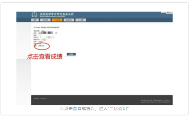 2.點(diǎn)擊查看成績后,進(jìn)入“二試說明”