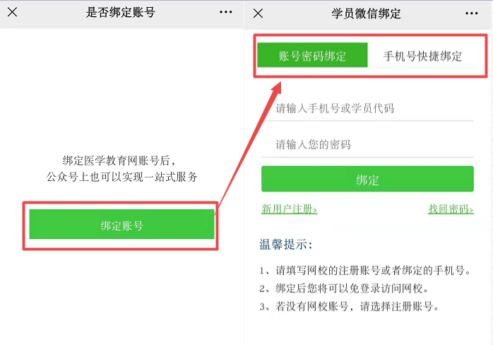 提示:已綁定過賬號的考生會自動跳轉(zhuǎn),未綁定的考生可使用賬號/密碼、手機號碼綁定。