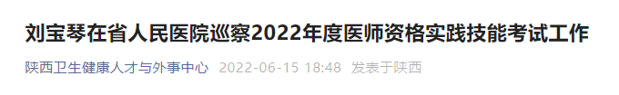 劉寶琴在陜西省省人民醫(yī)院巡察2022年度醫(yī)師資格實踐技能考試工作!為幫助參加2022年醫(yī)師資格實踐技能考試的考生了解,在此醫(yī)學教育網(wǎng)小編為大家整理如下內(nèi)容: