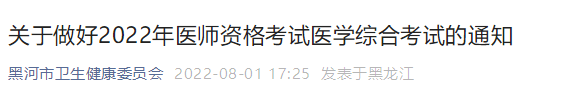 黑龍江黑河市關(guān)于做好2022年醫(yī)師資格考試醫(yī)學(xué)綜合考試的通知