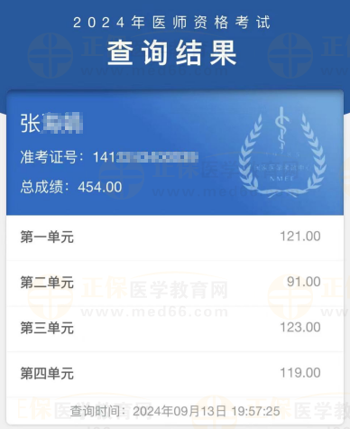 心里激動(dòng)又忐忑,我們?nèi)齻€(gè)人同行考試,已經(jīng)知道一個(gè)同仁357分,差3分沒有考過,心里也忐忑自己過了沒過呀。大家都在查詢,服務(wù)器擁堵,最終兒子在電腦上查到結(jié)果,454分!高出及格線94分!順利通過考試!