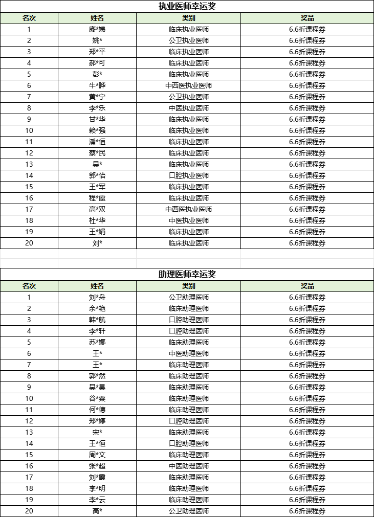 《2025年醫(yī)師資格曬分有獎》活動獲獎名單 | ||||
