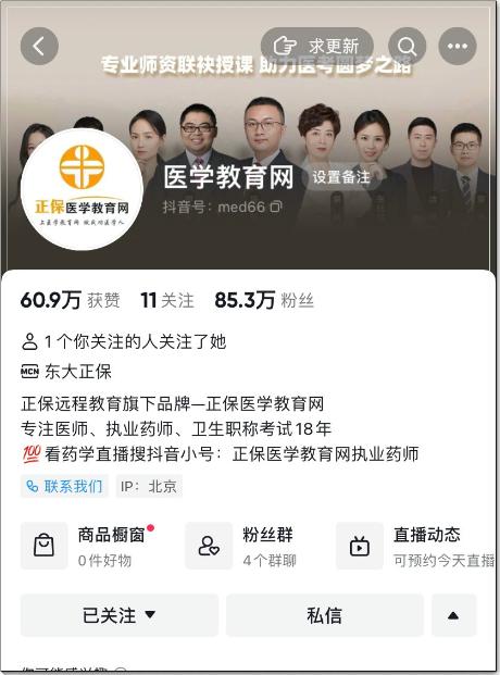 (醫(yī)學教育網(wǎng)抖音賬號示例圖)