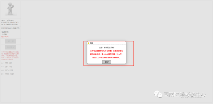 醫(yī)師資格考試綜合考試試卷包括A1 、A2、A3/A4和B1四種題型。為加強(qiáng)考試管理,維護(hù)考試公平,計(jì)算機(jī)化考試“跨題型不可回看”,考生須完成同一題型內(nèi)全部試題作答后,方可進(jìn)入下一題型。