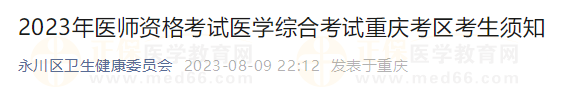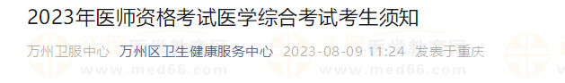 重慶永川區(qū)轉(zhuǎn)發(fā)2023年醫(yī)師資格考試醫(yī)學(xué)綜合考試考生須知