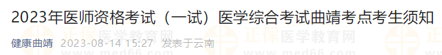 云南考區(qū)2023年醫(yī)師資格考試(一試)醫(yī)學綜合考試曲靖考點考生須知