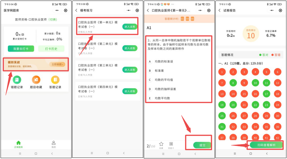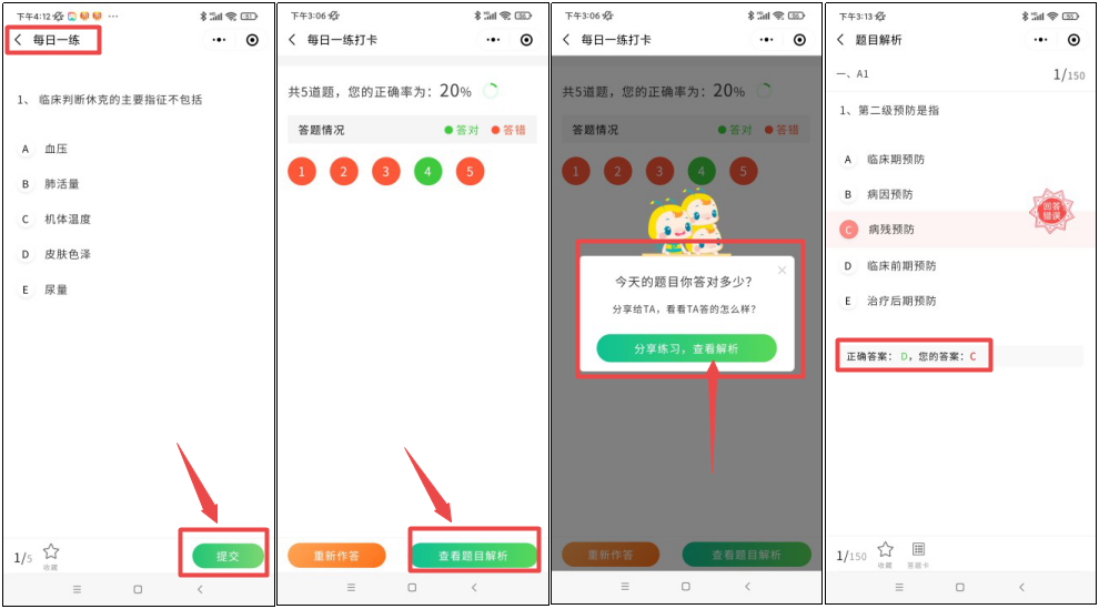 【每日打卡】和【模擬實(shí)戰(zhàn)】提交之后,不僅有成績(jī)和正確率統(tǒng)計(jì),還有答案解析,及時(shí)查漏補(bǔ)缺,鞏固薄弱知識(shí)點(diǎn)。