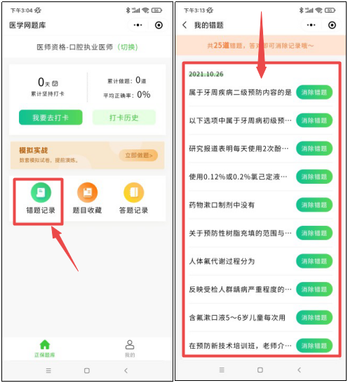 提供“我的錯(cuò)題”功能,針對(duì)做錯(cuò)的試題針對(duì)性加強(qiáng)鞏固,可以按照題型或者知識(shí)點(diǎn)從不同維度查漏補(bǔ)缺。錯(cuò)題記錄里面的試題再次答對(duì)就可以消除錯(cuò)題,幫助考生及時(shí)鞏固。