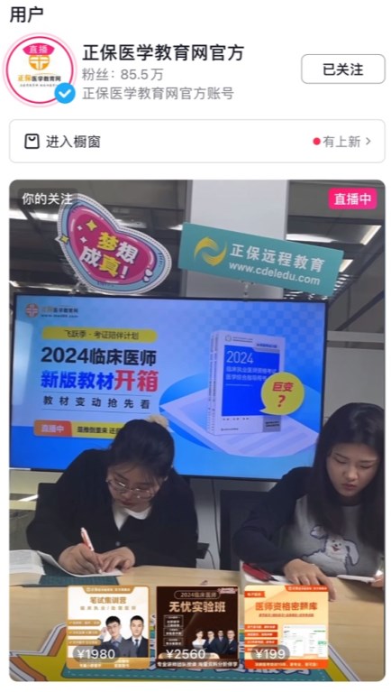 搜索關(guān)注抖音號"正保醫(yī)學(xué)教育網(wǎng)"。開播后在直播間可以直接申請連麥與老師暢談。