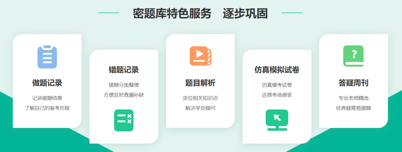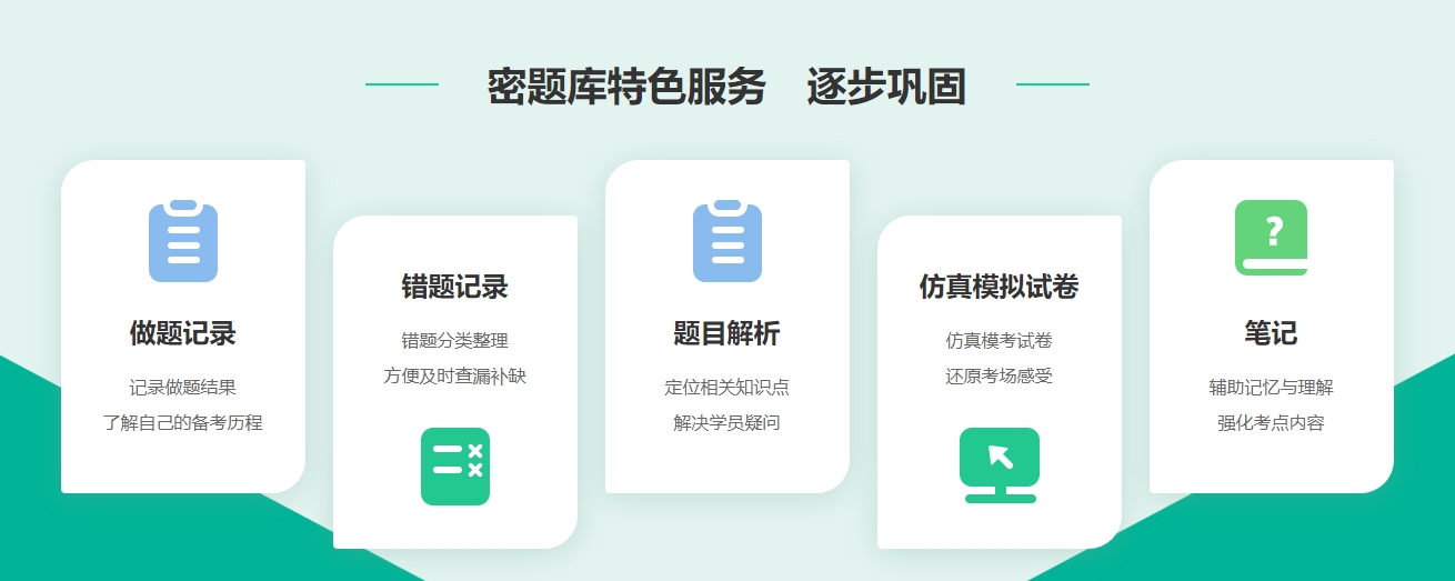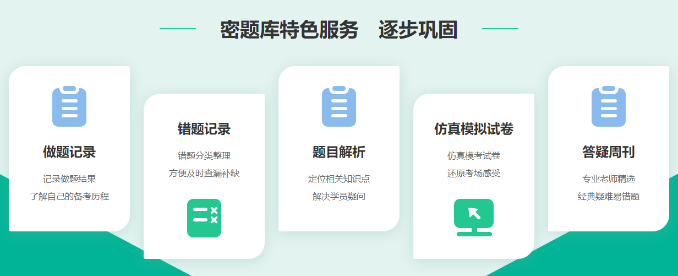 機(jī)械做題,不知如何通過做題提高自己的復(fù)習(xí)狀態(tài)?密題庫特色服務(wù):做題記錄、錯(cuò)題記錄、題目解析、仿真模擬卷,讓您刷題的同時(shí)對知識(shí)點(diǎn)的掌握更加透徹!