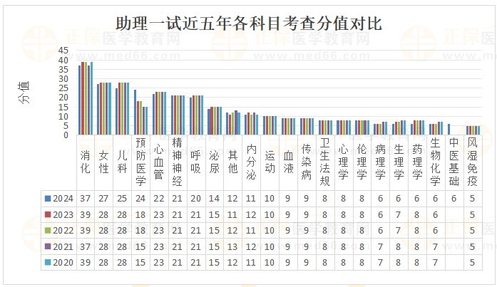 二、臨床執(zhí)業(yè)醫(yī)師近5年各科目考查分值對比