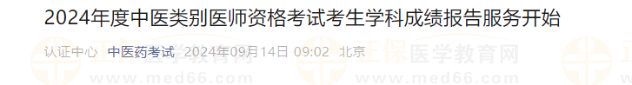 官方發(fā)布2024年度中醫(yī)類別醫(yī)師資格考試考生學(xué)科成績報告服務(wù)開始